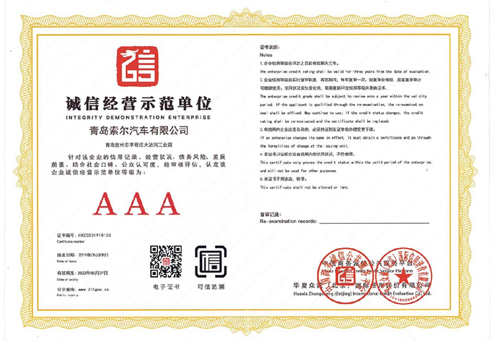 青島索爾汽車有限公司 產(chǎn)品碳足跡證書 公示